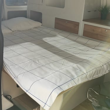 La Hyundai Starex H-1 Explorer 2020 es una furgoneta camperizada en Tenerife, perfecta para parejas o familias que buscan autonomía. Equipada con placa solar, cama doble, cocina portátil, frigorífico y ducha exterior, se convierte en tu base ideal para explorar volcanes, playas vírgenes y senderos de Canarias. Una opción económica y moderna de alquiler camper en Tenerife
